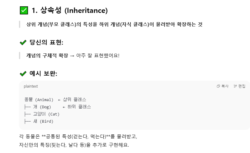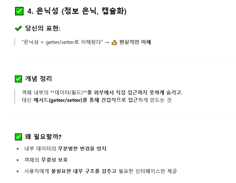 (상속, 다형성, 추상화 등)