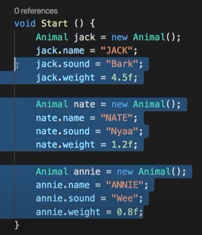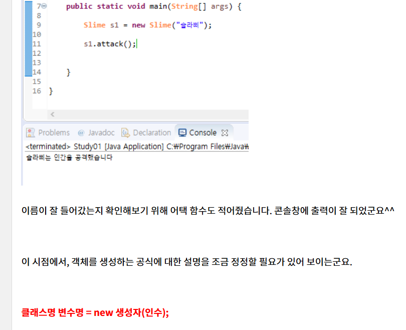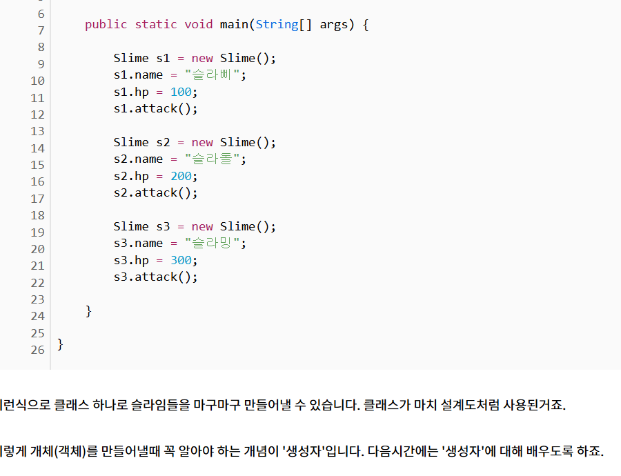 4> 클래스를 만들어서 , 필드는 캐릭터 (변수) / 메서드 (함수)를 정의한다