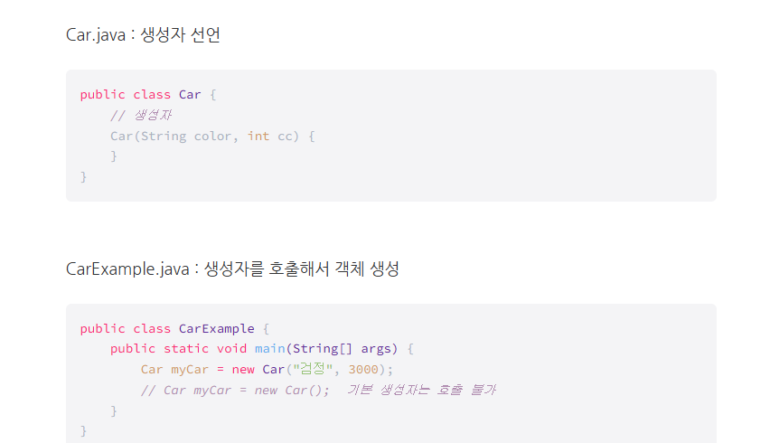 2) 클래스 내 기본 생성자 호출 (생성시 필수!)