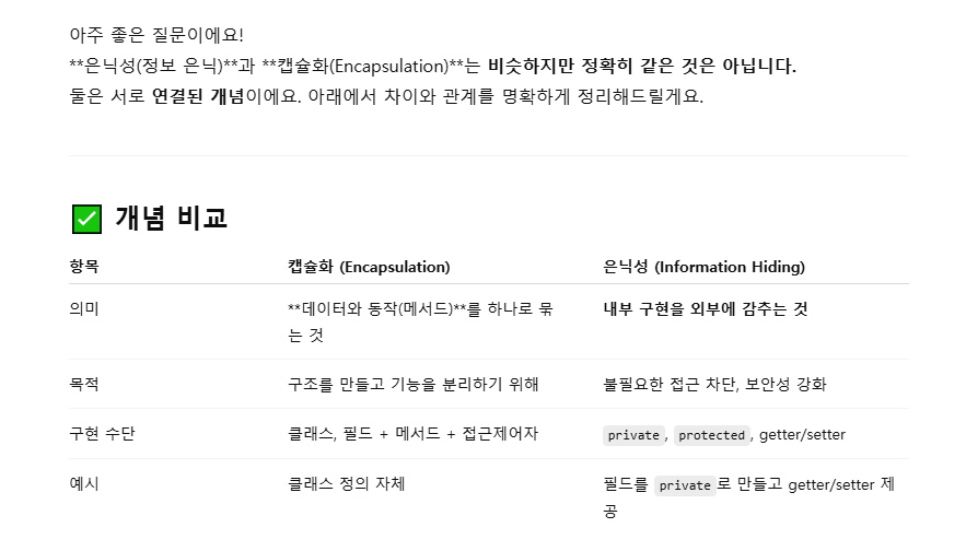 = 외부 프로그램(클래스)으로부터 정보(속성값, 데이터)를 감추는 것