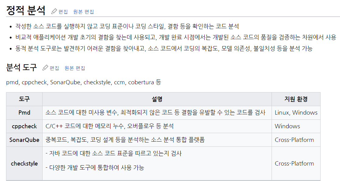 소스코드 품질 참고 : https://itwiki.kr/w/%EC%86%8C%EC%8A%A4%EC%BD%94%EB%93%9C%20%ED%92%88%EC%A7%88%20%EB%B6%84%EC%84%9D