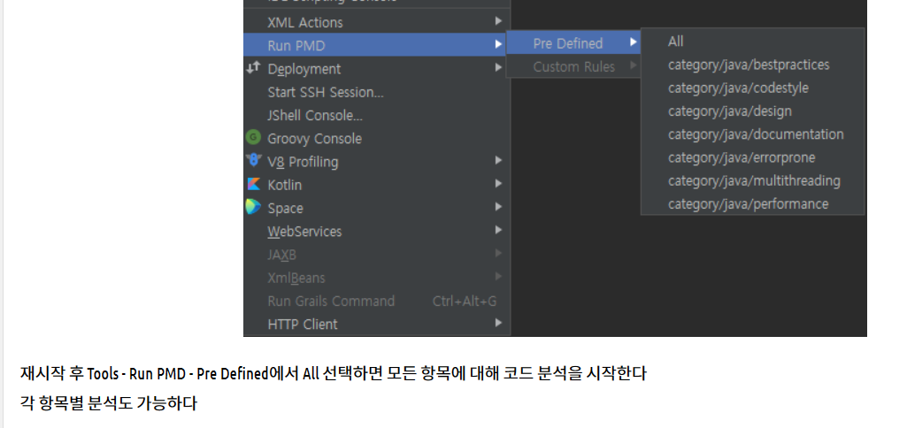 참고 : [기타] Intellij PMD로 코드 분석하기 :: 고양멍멍이 (tistory.com)